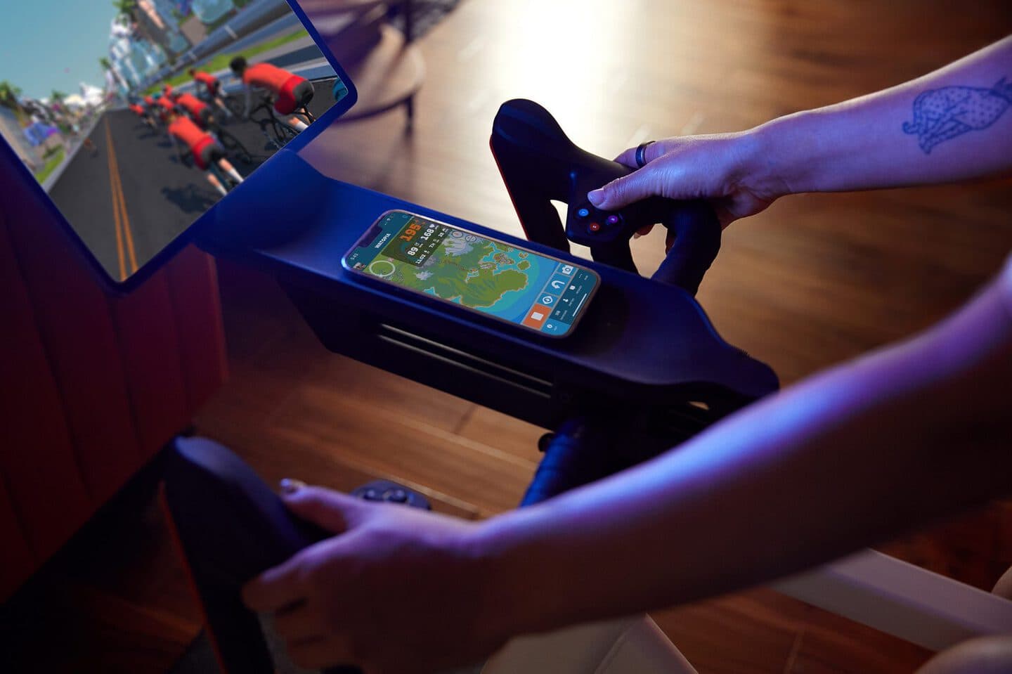 スマートトレーナーと呼ばれる室内トレーナーと組み合わせると、仮想世界の路面の勾配に応じて自動で負荷が変わるためリアルな走行感を楽しめます!さらにインターネットを通じて世界中のサイクリストと一緒に走ることもできます。